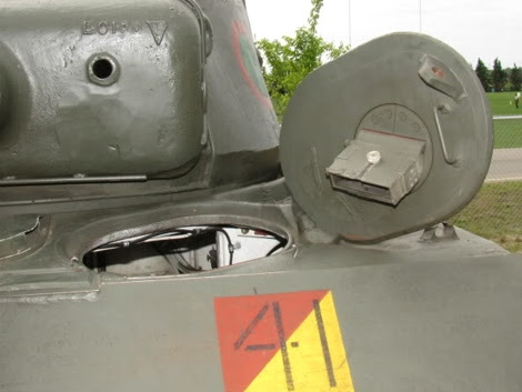 Arka taraftaki egzos sistemi M4A3(75) tanklarındakiyle aynıdır. Resimde egzos gaz deflektör sistemi görülmektedir.